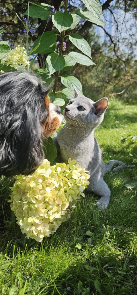 Koty rosyjskie niebieskie zazwyczaj dobrze reagują na inne zwierzęta, ale każda nowa interakcja wymaga odpowiedniego przygotowania i stopniowego wprowadzania.